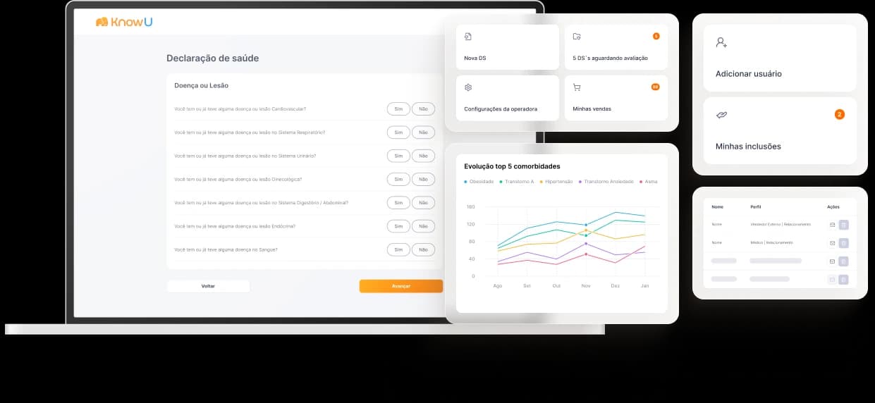 Construída por 4 sócios de diferentes origens profissionais, a KnowU foca em uma experiência de uso simples e amigável atrelada a uma robusta gestão de dados, gerando um importante incremento na eficiência de gestão às operadoras de saúde.
